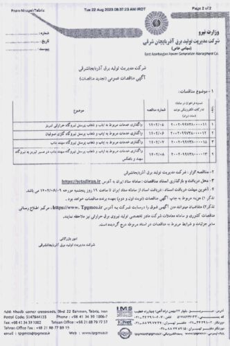 آگهی مناقصه شرکت برق منطقه ای آذربایجان