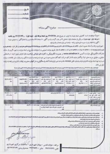 آگهی مزایده شهرداری مراغه