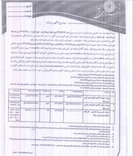 آگهی مناقصه واگذاری جدول کشی و کارخانه آسفالت شهرداری مراغه
