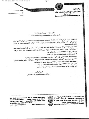 شرکت توزیع نیروی برق استان آذربایجان شرقی در نظر دارد 15 دستگاه خودرو فرسوده را از طریق مزایده به فروش برساند