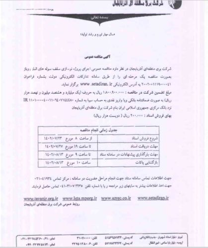 آگهی مناقصه شرکت برق منطقه ای آذربایجان