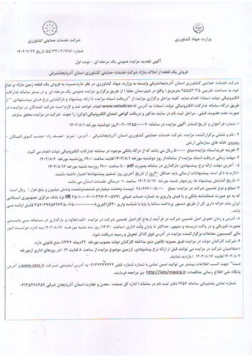 آگهی مزایده شرکت خدمات حمایتی کشاورزی استان آذربایجان شرقی