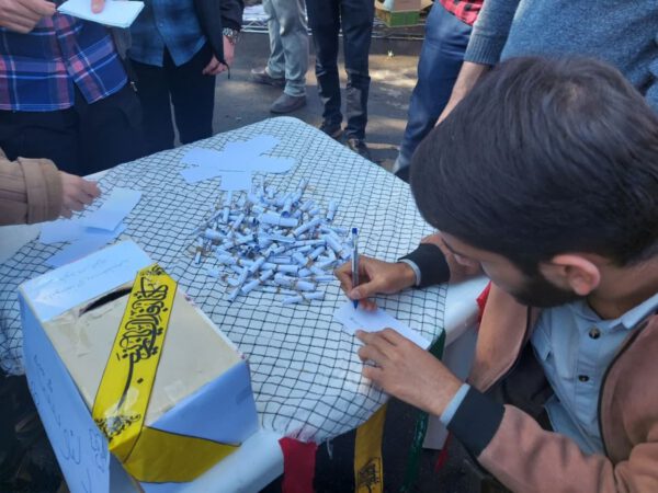 تجمع کنندگان همچنین با همراه داشتن دست نوشتههایی ضمن اعلام انزجار از سیاستهای خصمانه آمریکا و رژیم صهونیستی، خواستار توقف کشتار مردم مظلوم فلسطین توسط صهیونیستها شدند.
