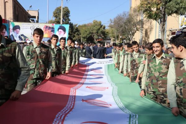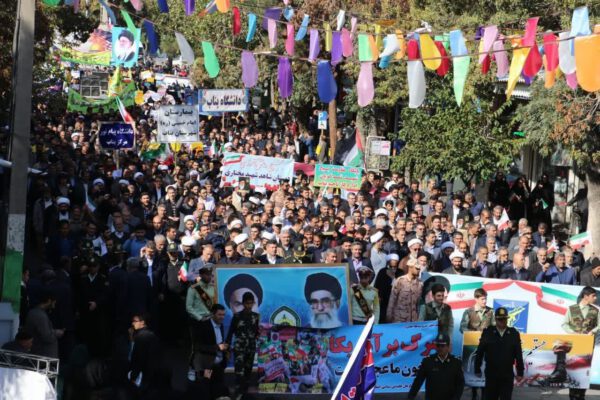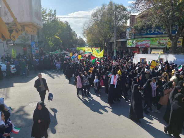 مردم، دانش آموزان و دانشجویان پرچم مقدس کشورمان به همراه پرچم های فلسطین و حزب الله لبنان را با خود به همراه داشتند.
