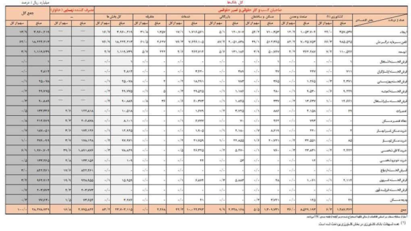 جدول ۱- هدف از دریافت تسهیلات پرداختی در بخشهای اقتصادی طی ۷ ماهه ابتدای سال ۱۴۰۲