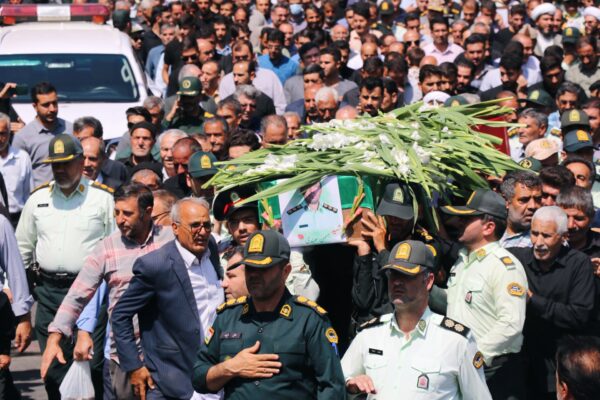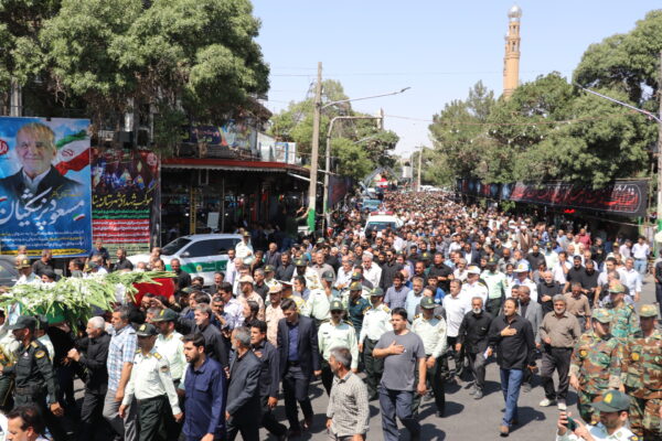 پیکر شهید مدافع امنیت سرهنگ بهمن مرندی که در جریان مقابله با مخلان نظم و امنیت و قاچاقچیان در شهرستان ملکان به شهادت رسید در شهرستان بناب تشییع شد.