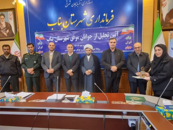 یکشنبه ۱۹ اسفند طی مراسمی با حضور فرماندار بناب، بخشدار و جمعی از روسای ادارات شهرستان از جوانان موفق در حوزههای ورزشی، علمی، هنری، کارآفرینی و اجتماعی تجلیل شد.